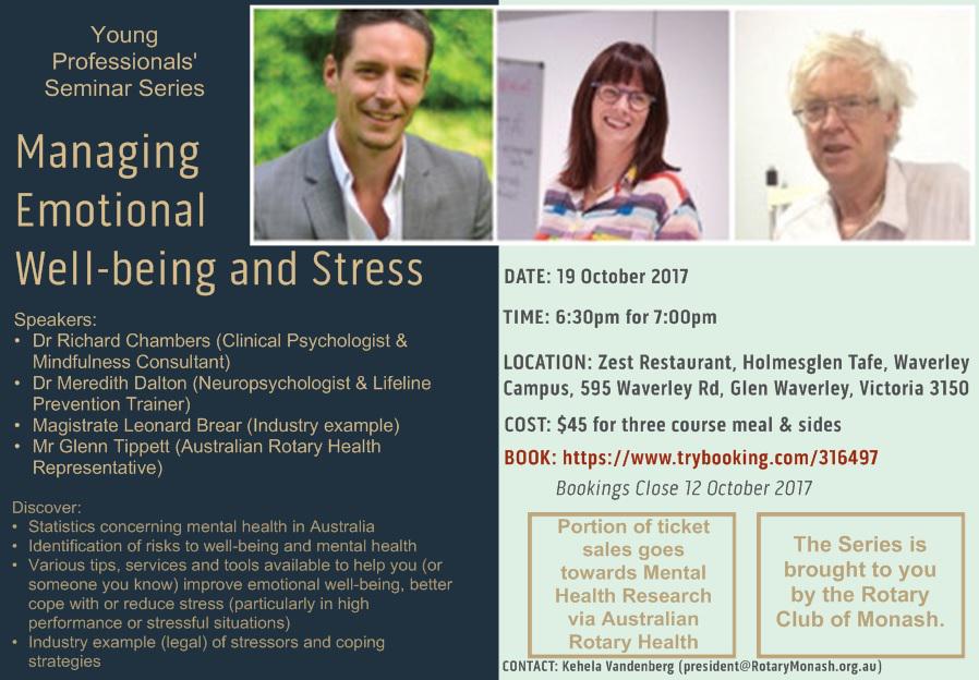 Managing Emotional Well-being and Stress is the first topic in the Young Professionals' Seminar Series